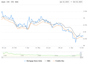 As of early October, 30-year mortgage rates are holding steady at around 6.3%, roughly the same as in early September but well below the 7%